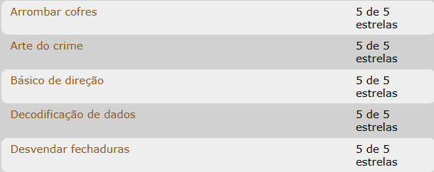 Pré-requisitos: 5 estrelas em Técnicas de arrombamento.